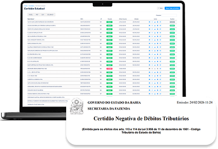 Emitir e Armazenar CNDs em lote e de forma automática.