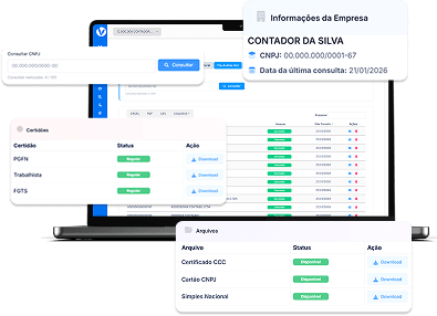Proteja seus contratos e licitações com um Raio-X fiscal 24/7. Monitoramos pendências federais, estaduais e municipais em tempo real, garantindo segurança jurídica e conformidade total para sua diretoria nunca ser pega de surpresa.